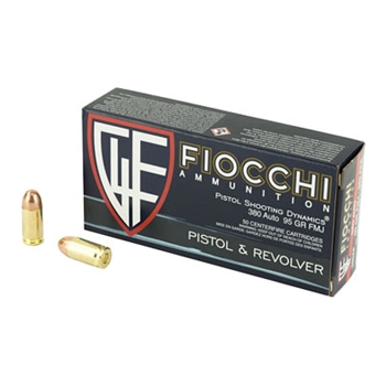 Fiocchi Ammunition, Centerfire Pistol, 380ACP, 95 GR, FMJ, 50 BX